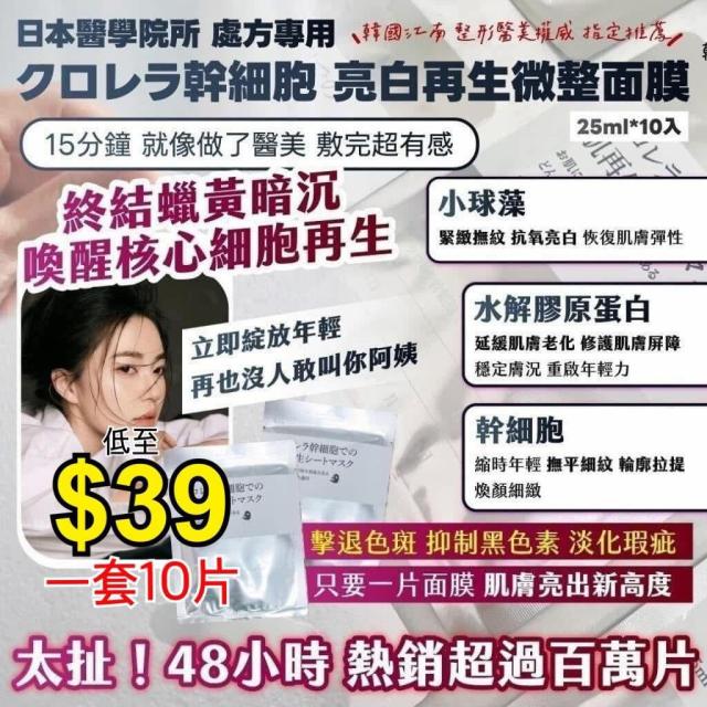 【現貨 - 2套以上優惠】Q01-004 日本醫學院所 處方專用クロレラ幹細胞 亮白再生微整面膜(25ml*10入)