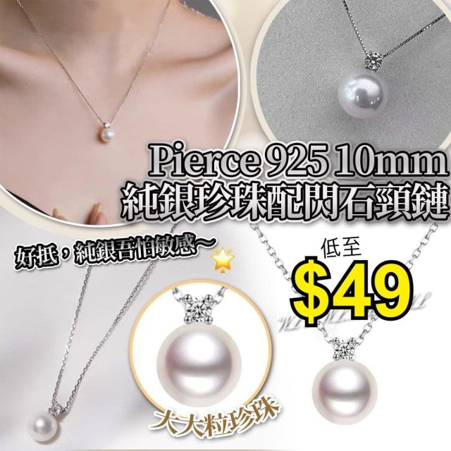 K04-001 Pierce 925 純銀珍珠配閃石頸鏈 10mm